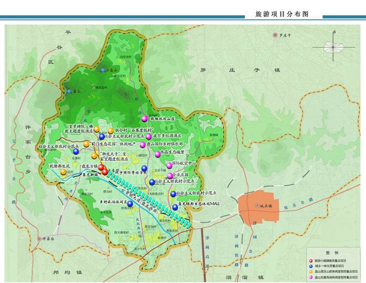 官莊休閑度假區(qū)的旅游產(chǎn)業(yè)布局,是在對盤山歷史文化延續(xù)、遺址遺跡保護(hù)的前提下,以當(dāng)今和未來旅游市場需求為指導(dǎo),同時將與旅游開發(fā)、小城鎮(zhèn)建設(shè)、社會主義新農(nóng)村建設(shè)緊密結(jié)合,實現(xiàn)自然山水觀光、歷史遺址恢復(fù)、文化旅游、休閑度假、鎮(zhèn)區(qū)環(huán)境建設(shè)與土地開發(fā)的復(fù)合功能,創(chuàng)造綜合效益最大化。