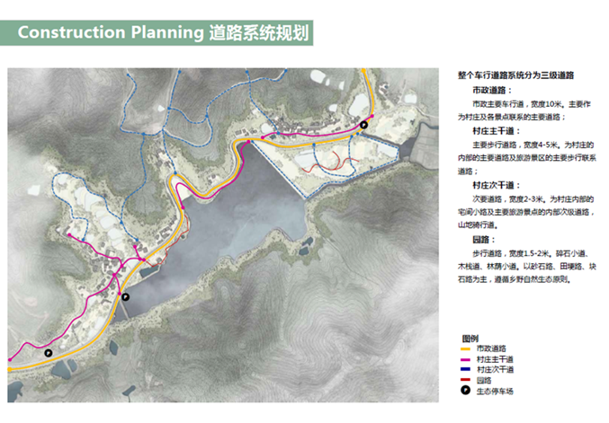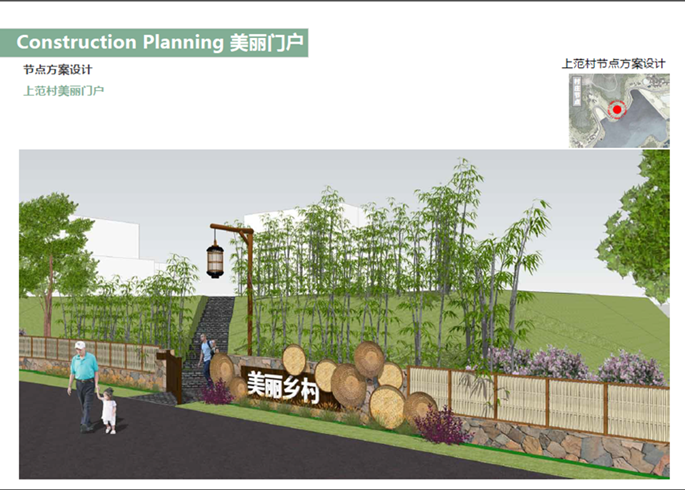 上范村位于南京江寧美麗鄉(xiāng)村西部片區(qū)。規(guī)劃圍繞政府現(xiàn)有西部騎行游路,進(jìn)一步提升節(jié)點(diǎn)環(huán)境;利用現(xiàn)有的村莊建筑,進(jìn)行民宿提升改造;并進(jìn)一步完善村莊生活配套設(shè)施。目標(biāo)是造成休閑文創(chuàng)示范區(qū)、精品民宿體驗(yàn)區(qū)、美麗鄉(xiāng)村示范點(diǎn)。
