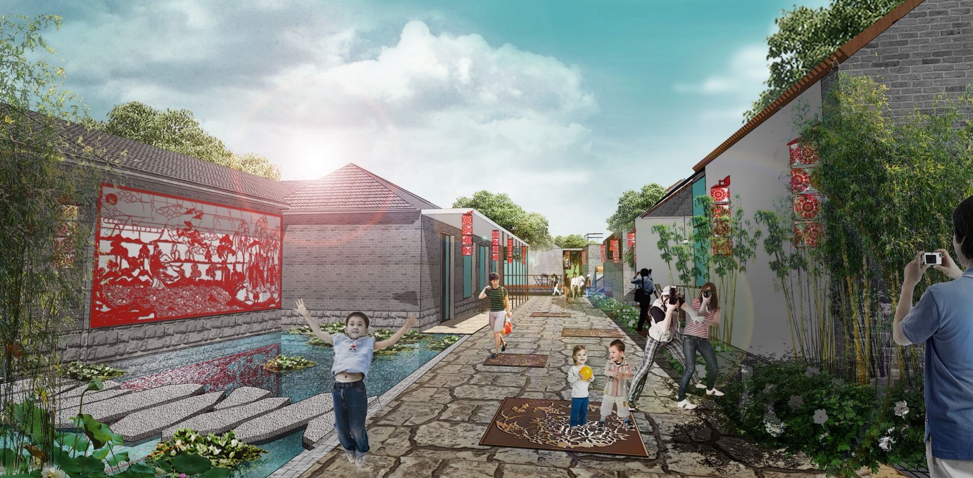 剪紙風情街:將剪紙藝術(shù)嫁接為地面浮雕裝飾、墻飾等,強化剪紙藝術(shù)氛圍。