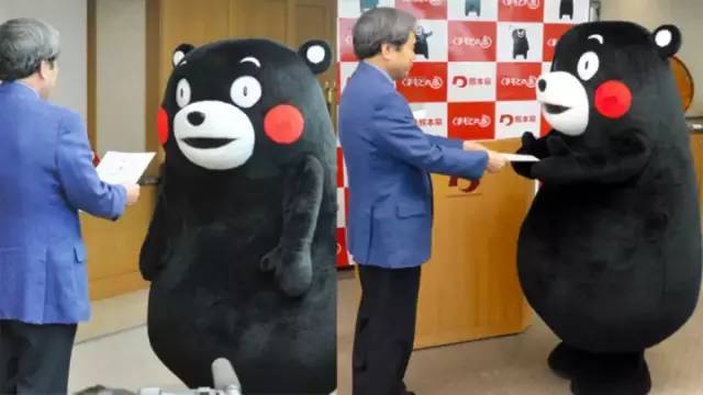 2010年,縣政府聘任熊本熊為臨時(shí)公務(wù)員,接著縣知事(縣長)蒲島郁夫?qū)ⅰ霸诖筅娣职l(fā)一萬張名片,提升熊本縣知名度”的任務(wù)交給了它。