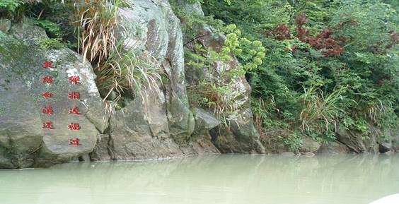 摩崖石刻不可過多,否則流于庸俗、破壞自然美。但選擇適當(dāng)?shù)纳绞?,篆刻上能符合?dāng)?shù)匚拿}地脈文句,則能加深旅游意境。