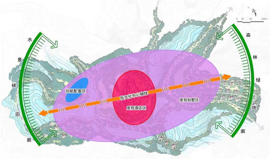 (3)三區(qū):度假酒店區(qū)、功能配套區(qū)、別墅組團區(qū)