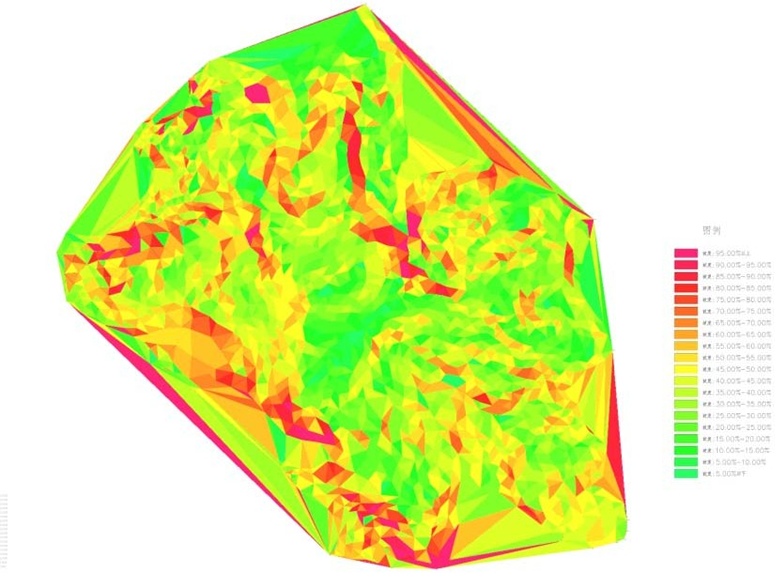 翁丁佤文化度假區(qū)適宜選擇坡地,對于朝向沒有硬性要求,建筑密度小,對采光要求不大,因此坡向?qū)τ诙燃賲^(qū)建設(shè)影響較小。場地坡向條件較適合度假區(qū)的建設(shè)要求, 場地中60%面西和西南,日照條件良好,較適合度假區(qū)建設(shè)需求,場地建筑也將以西向為主。