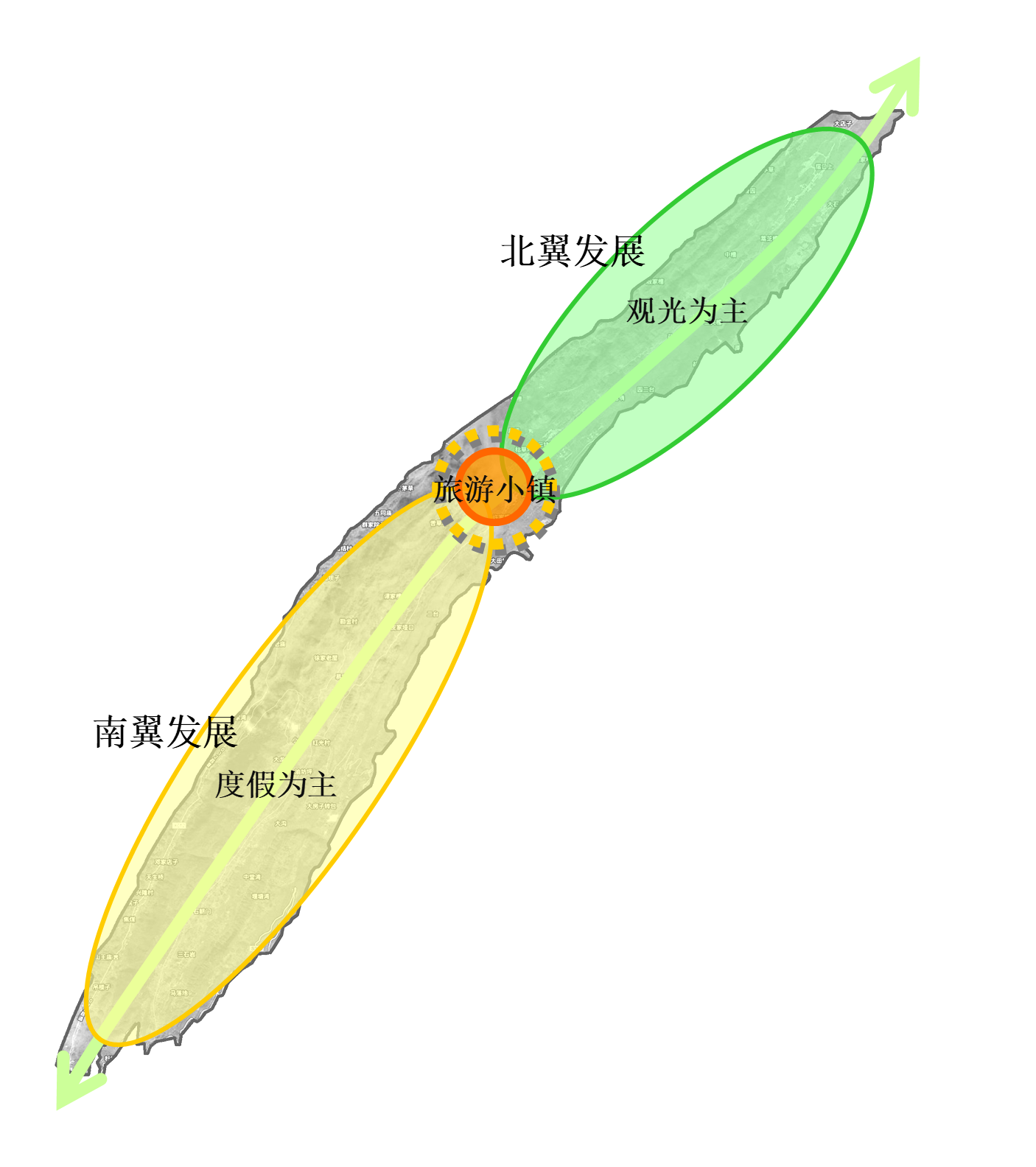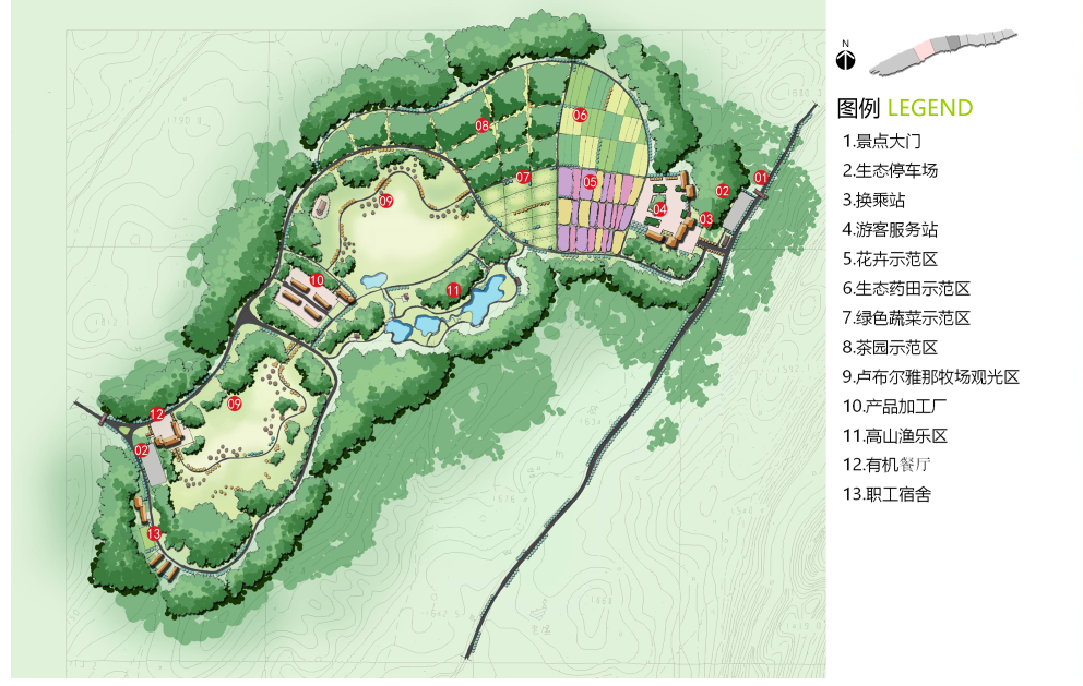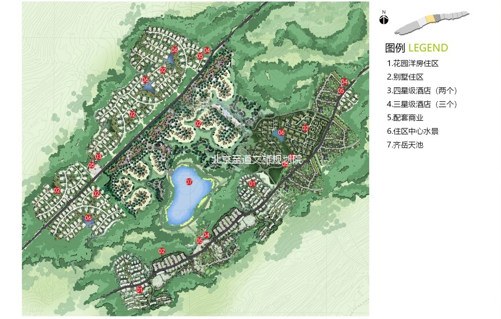 南翼為度假區(qū),包括:國際戶外運動中心、齊岳草場度假區(qū)、生態(tài)農(nóng)業(yè)休閑區(qū)、自然風(fēng)光區(qū)。南北相輔相成,