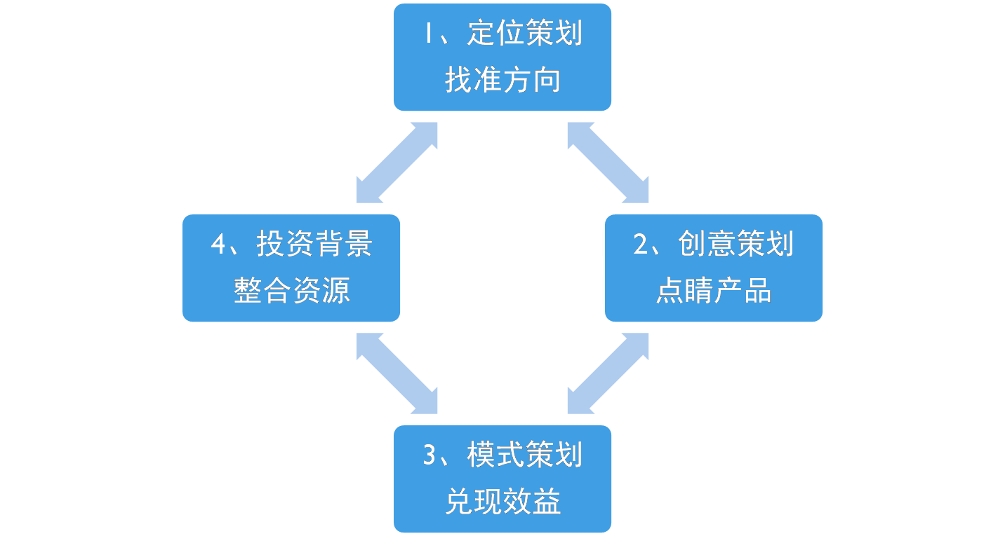 3、模式策劃兌現(xiàn)效益:“產(chǎn)品做得好,不等于能掙錢;投資商能掙錢,也不等于地方政府與百姓能受益”,因此還需要通過商業(yè)模式策劃來兌現(xiàn)效益;