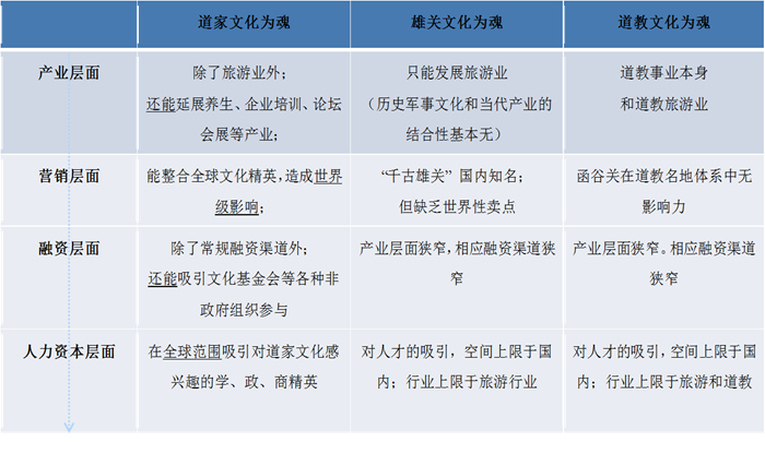 在該項(xiàng)目的道教、道家、名關(guān)三大文脈中,我們力排眾議選取“道家文化”作為文創(chuàng)園區(qū)的開發(fā)主題定位。為什么呢?也正是因?yàn)榈兰椅幕黝},從產(chǎn)業(yè)規(guī)劃、到營銷造勢、到招商渠道,具備更強(qiáng)大的主題貫穿性,帶動(dòng)性,能使得項(xiàng)目迎刃而解: