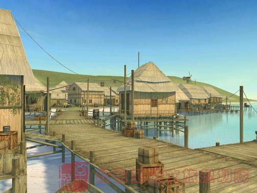 (水上人家。典型原生態(tài)風味仿茅屋建筑,外土內洋,本身是景觀,還適宜發(fā)展水上餐廳)