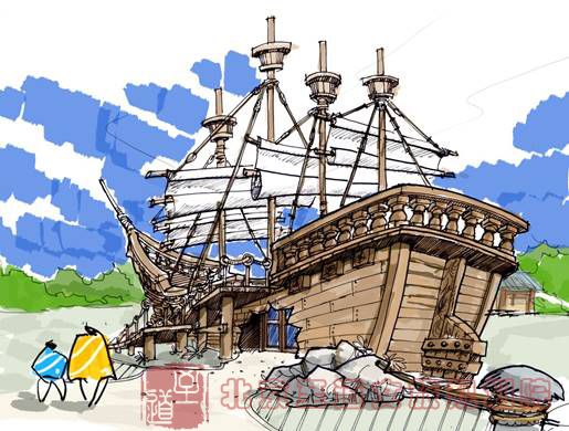 (船吧。這是注入漁家文化的大膽創(chuàng)意。在濱水區(qū)打造四個平臺,平臺猶如船形馳向水中,功能上可以開發(fā)為濱水排檔餐飲)