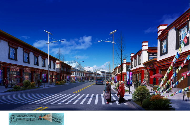 根據(jù)地形特點(diǎn)和功能需求,在鎮(zhèn)區(qū)南北兩側(cè)布置具有對(duì)外服務(wù)和展示功能的旅游綜合服務(wù)區(qū)和新型居民點(diǎn),在東側(cè)通往不丹方向布置綜合商貿(mào)中心,西側(cè)結(jié)合自然山體建設(shè)鎮(zhèn)區(qū)山地公園。由此形成鎮(zhèn)區(qū)的空間布局.