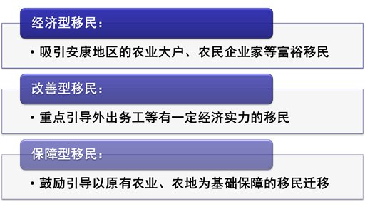 保障型移民:鼓勵引導(dǎo)以原有農(nóng)業(yè)、農(nóng)地為基礎(chǔ)保障的移民遷移