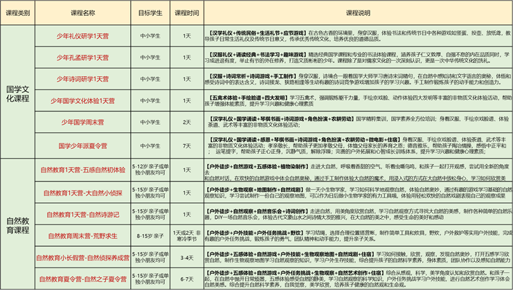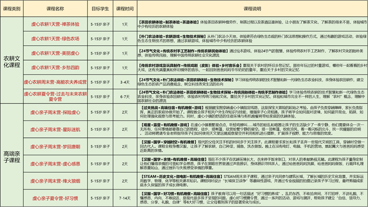 國學虔心研學課程分為六個板塊:國學文化課程、自然教育課程、科技教育課程、素質(zhì)教育課程、農(nóng)耕文化課程、高端親子課程